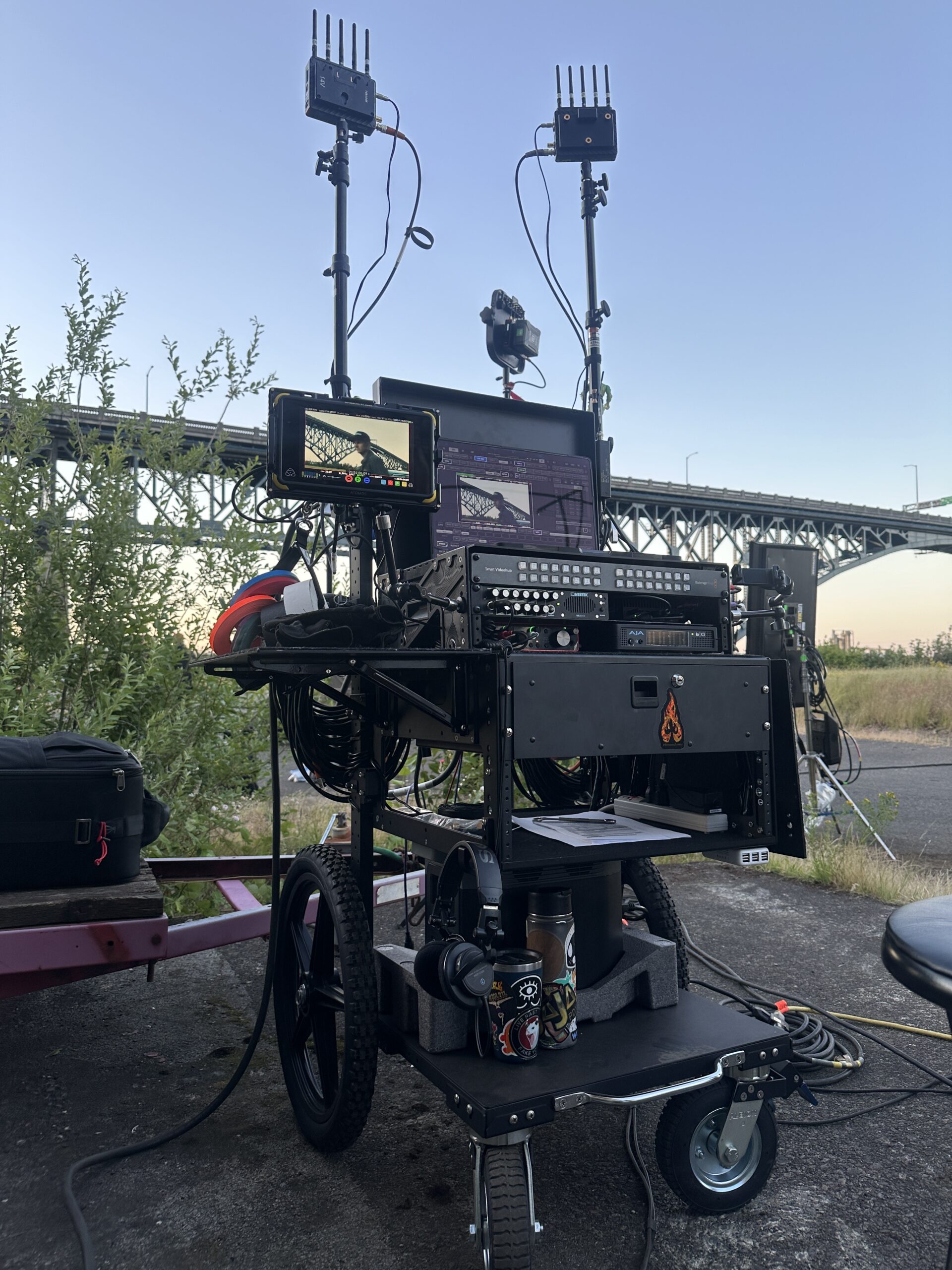 Tyler has been designing and operating Video Villages for professional film sets since 2009. His passion for technology combined with his sense of adventure and attention to detail ensures that when the camera is on, the crew can view the action. Whether in the studio, the back of a follow van, or atop a waterfall, Tyler will get the perfect signal to display the perfect shot.