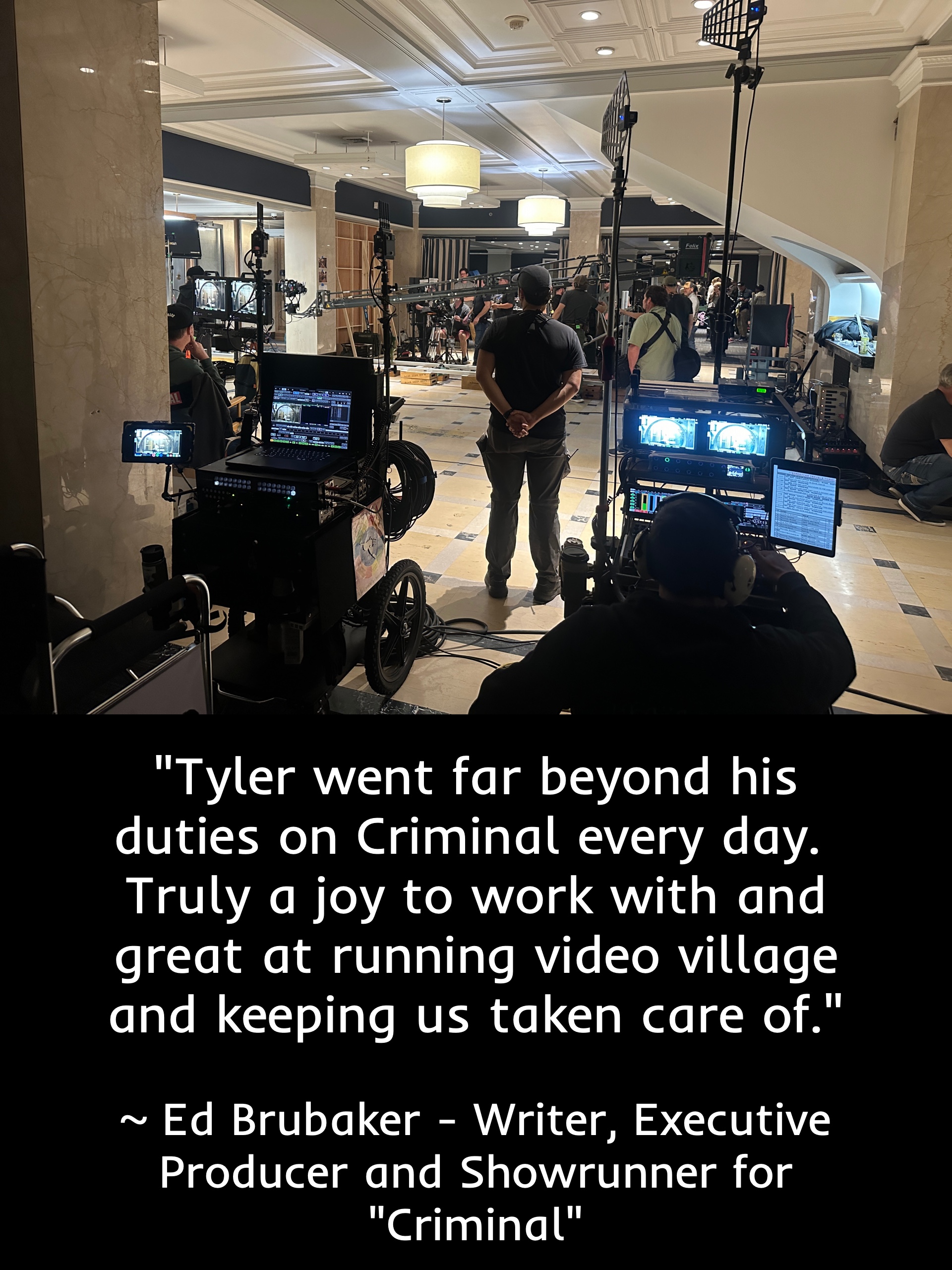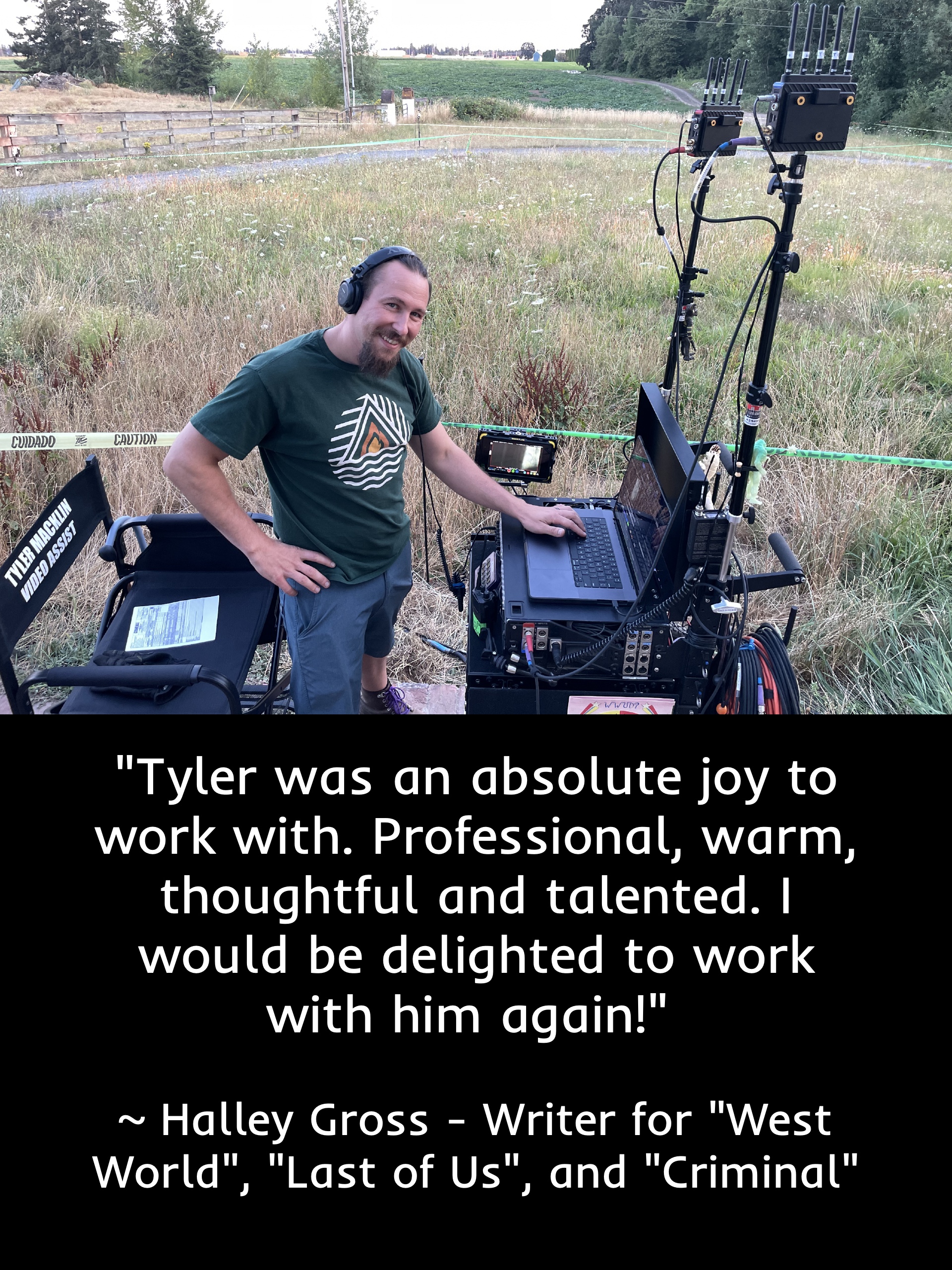 Tyler achieved a degree in Journalism with a focus on Electronic Media from the University of Oregon and started working on commercials and feature films before he graduated. He quickly found himself working as a Graphics Playback Operator and transitioned to Video Assist and Qtake Operator after that.